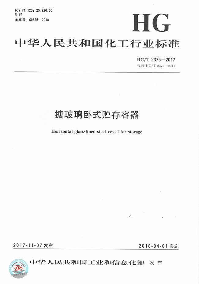 ?? 2017 年 參編行業標準 HG/T 2375-2017《搪玻璃臥式貯存容器》;